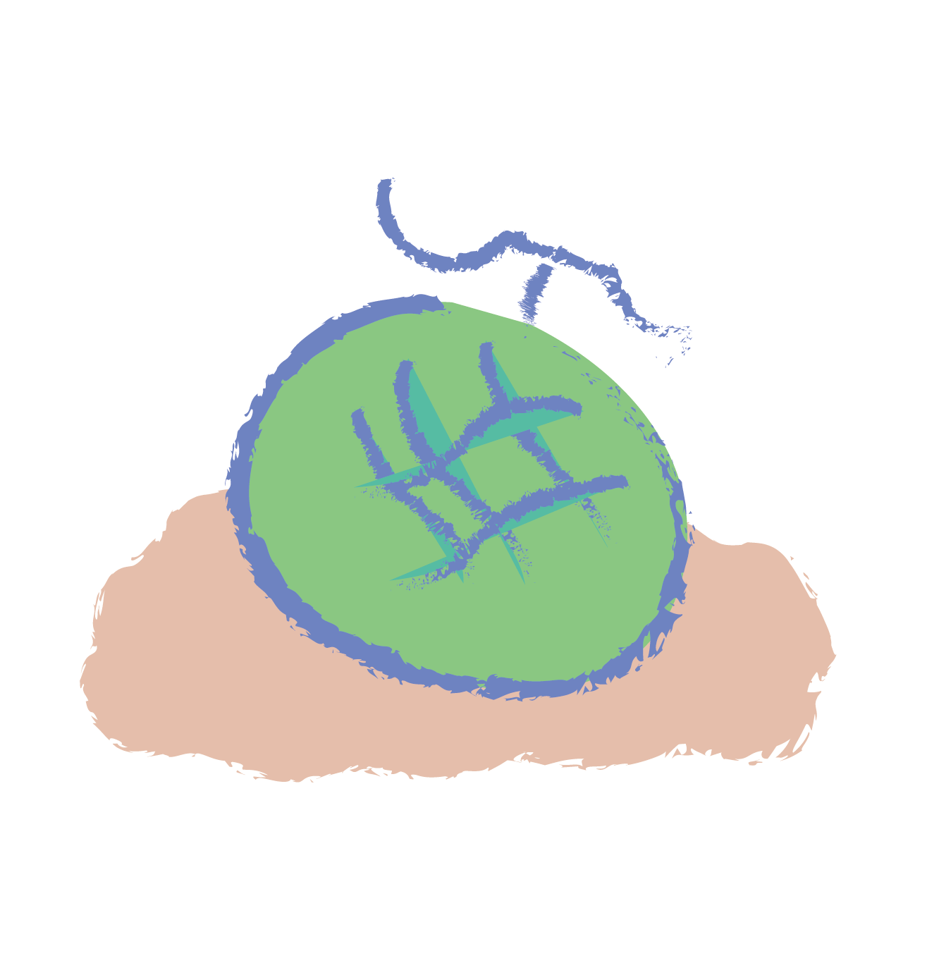 自分のアイコンとして使用するために書いたイラストです。 下にある雲は、桐箱に入っている高級なメロンのクッションになっているもふもふをイメージしています