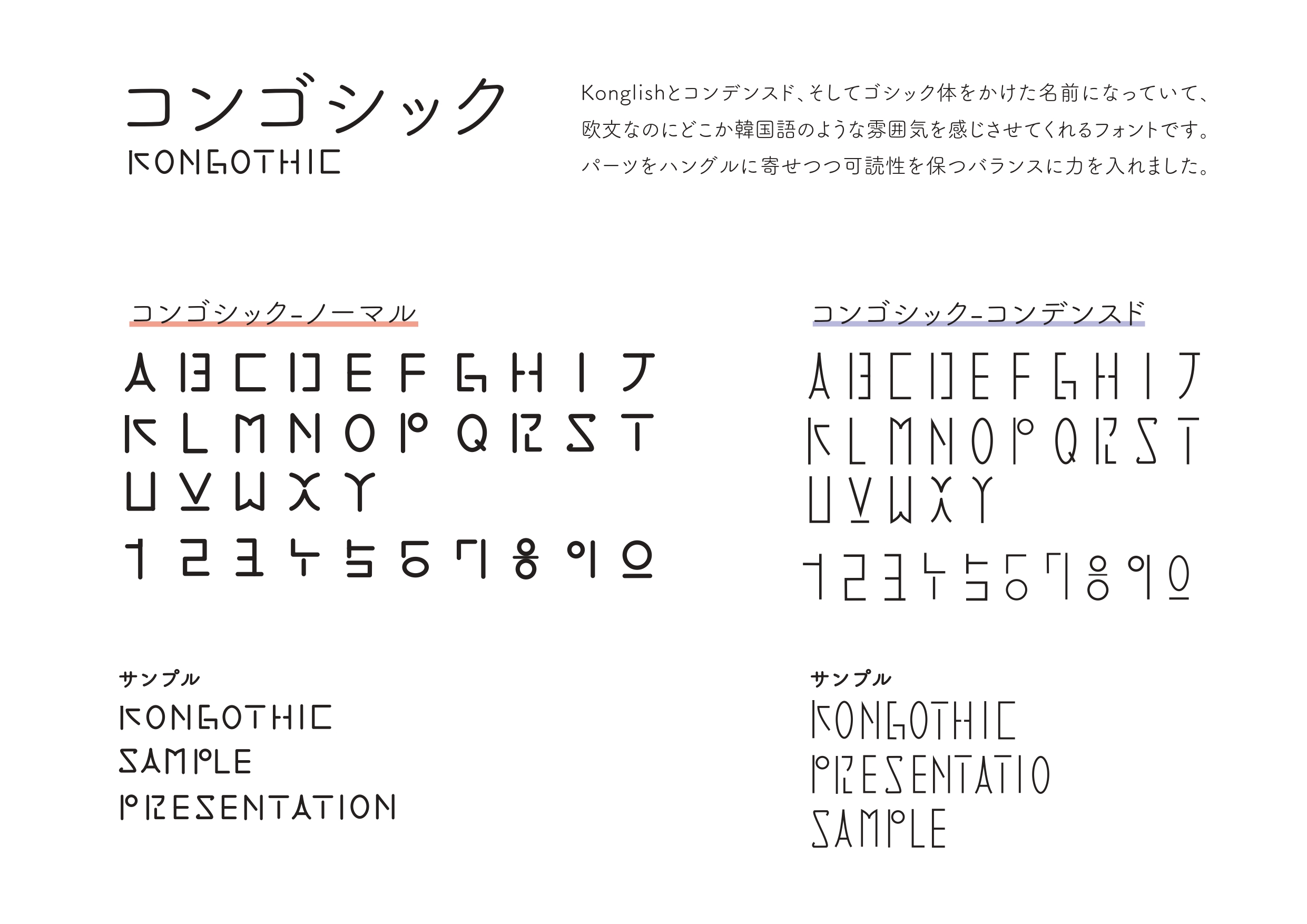 ハングルをイメージしてパーツを構成して作ったフォントで、どこか韓国語のような雰囲気を与えてくれるのが特徴です。 パーツをハングルに寄せつつもきちんと数字に見えるようなバランスを保つことに力を入れました。 個人的にはノーマルのほうが好きですが、評判はコンデンスドのほうが優勢です。 あなたはノーマルとコンデンスド、どちらが気に入りましたか?